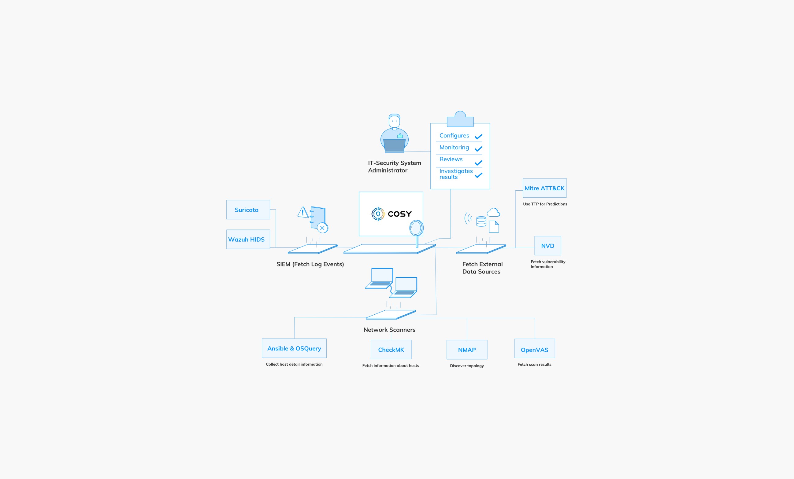 Cosy is a cybersecurity system that leverages a Reinforcement Learning (RL) agent within a simulated environment to identify potential attack paths based on infrastructure scans and detected vulnerabilities. The project is developed for the Bundesamt für Sicherheit in der Informationstechnik (BSI).