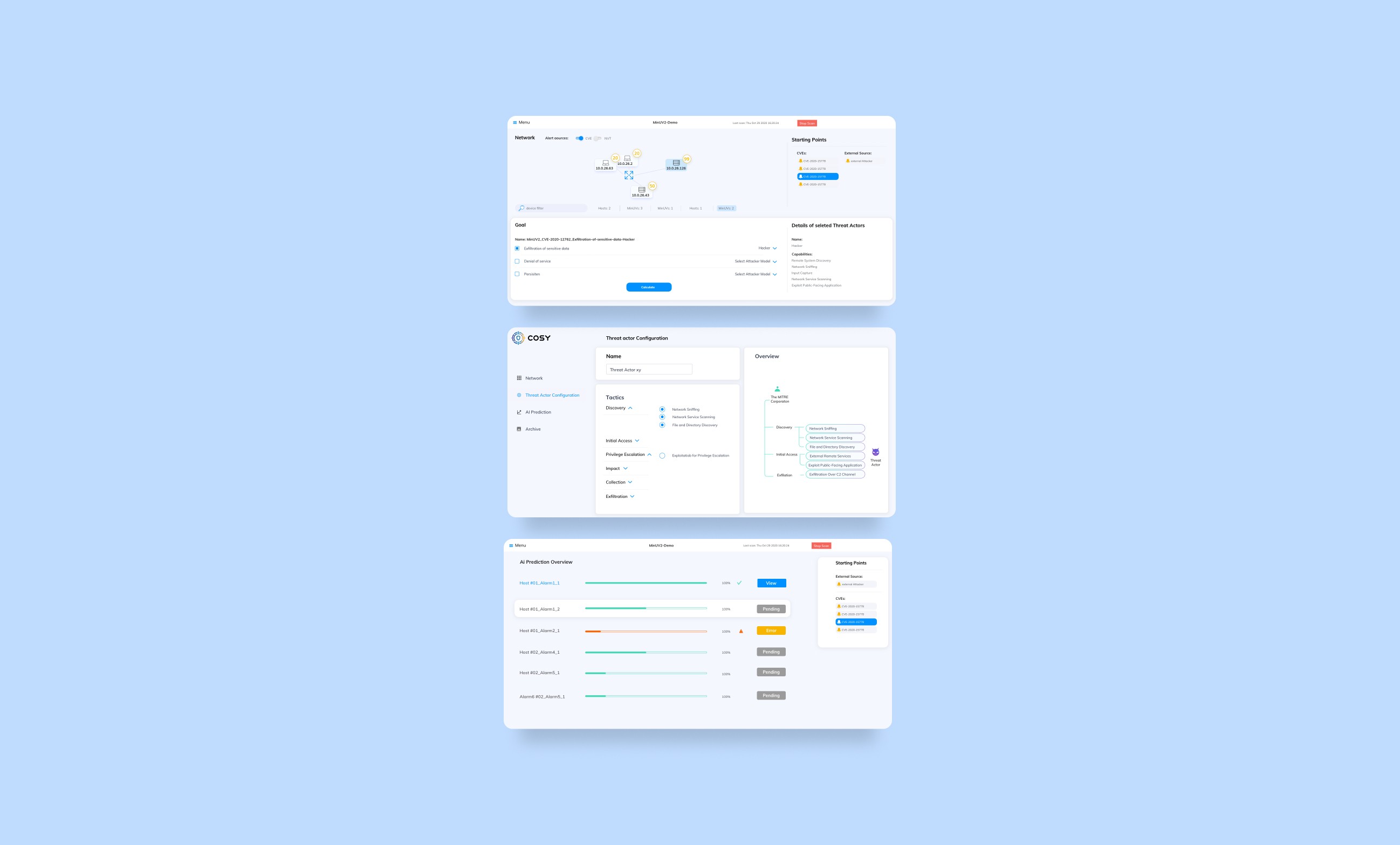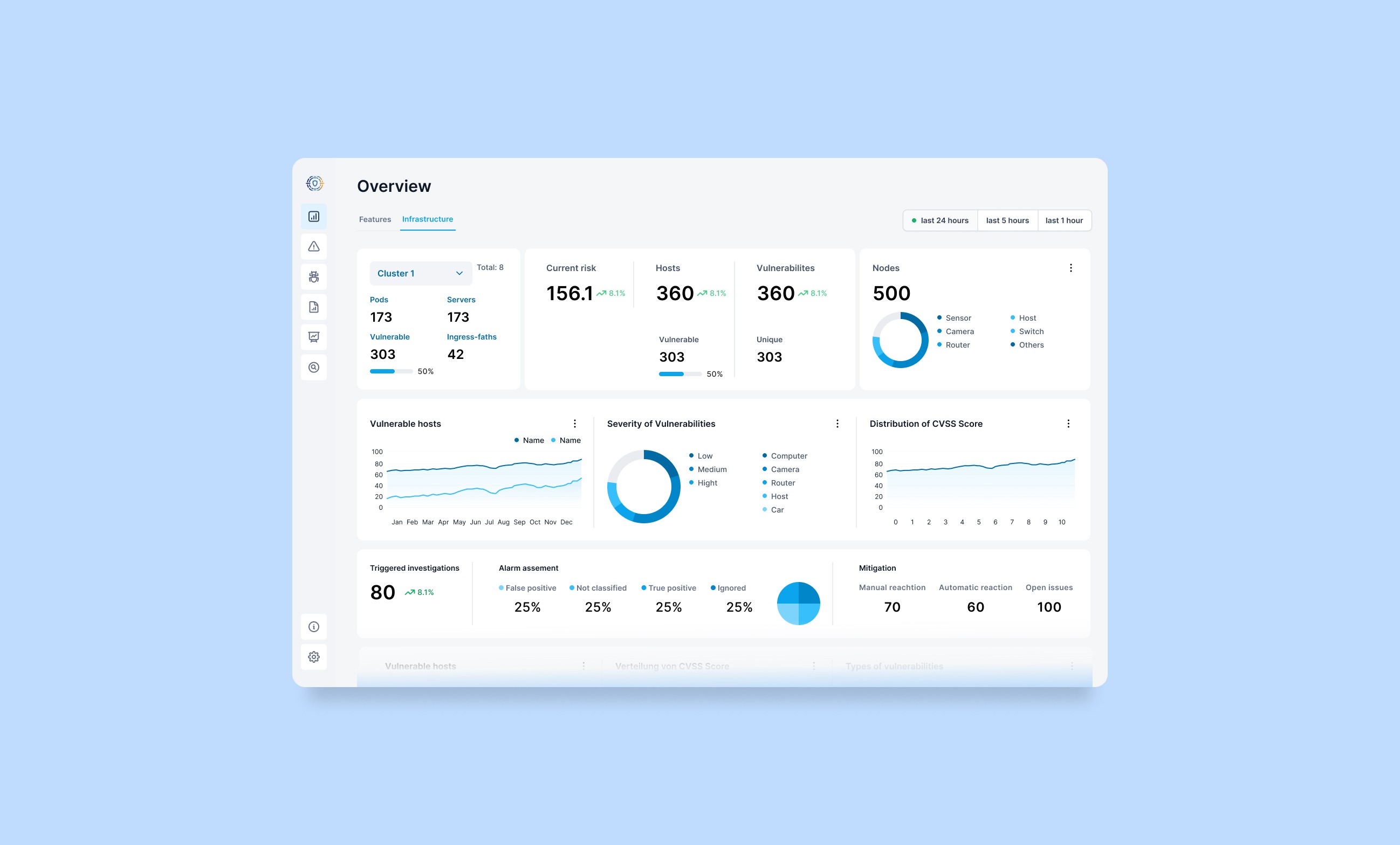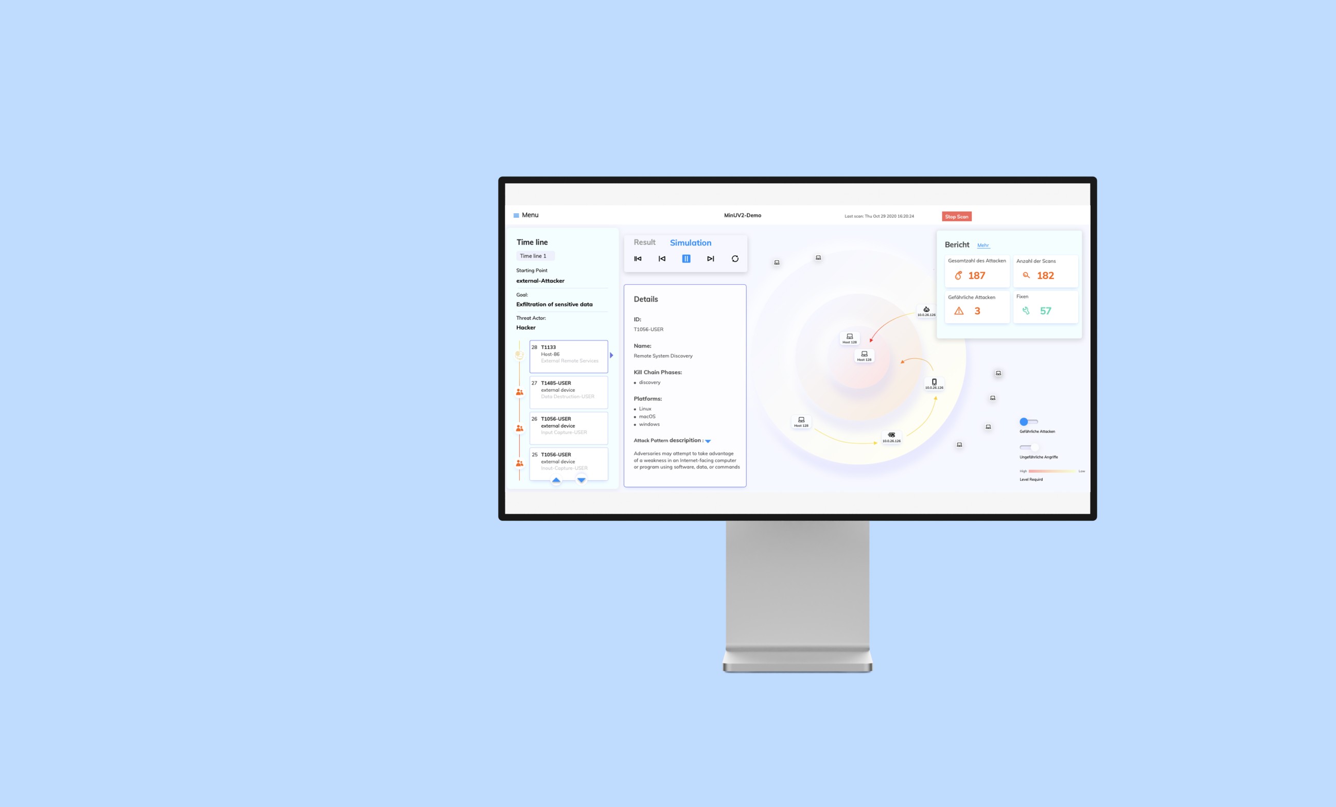 The app provides administrators with a comprehensive overview of the system and its infrastructure. Automated security assessments continuously detect and display new vulnerabilities or alerts. Additionally, administrators can simulate attack scenarios based on detected vulnerabilities to identify potential system weaknesses. These simulations can be initiated manually or triggered by alerts, optimizing efficiency and saving time. The app also offers predictive insights, allowing administrators to review forecasted attack paths and risks.